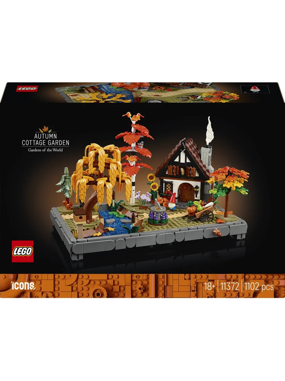 با مجموعه مدل ساختمانی لگو آیکنز فال کاتج گاردن (11372) که برای بزرگسالان طراحی شده است، روح پاییز را به خانه خود بیاورید. یک مدل باشکوه پر از رنگهای پاییزی بسازید. در حالی که با دقت هر جزئیات ظریف را میسازید، استراحت کنید، سپس درختان، گیاهان و تزئینات کلبه را دوباره بچینید تا یک مدل نمایشی تزئینی پر جنب و جوش برای خانه یا محل کار خود ایجاد کنید. این مجموعه مدل ساختمانی که بخشی از مجموعه باغهای جهانی است، از کلبههای کتاب داستان الهام گرفته شده و شامل درختان توس، بید مجنون، صنوبر آبی و افرا و همچنین گلهای فصلی است. همچنین شامل جزئیات مهم دیگری مانند ساعت آفتابی، لانه پرنده، گاری سبزیجات، کوتوله باغ و سنگهای پله است.