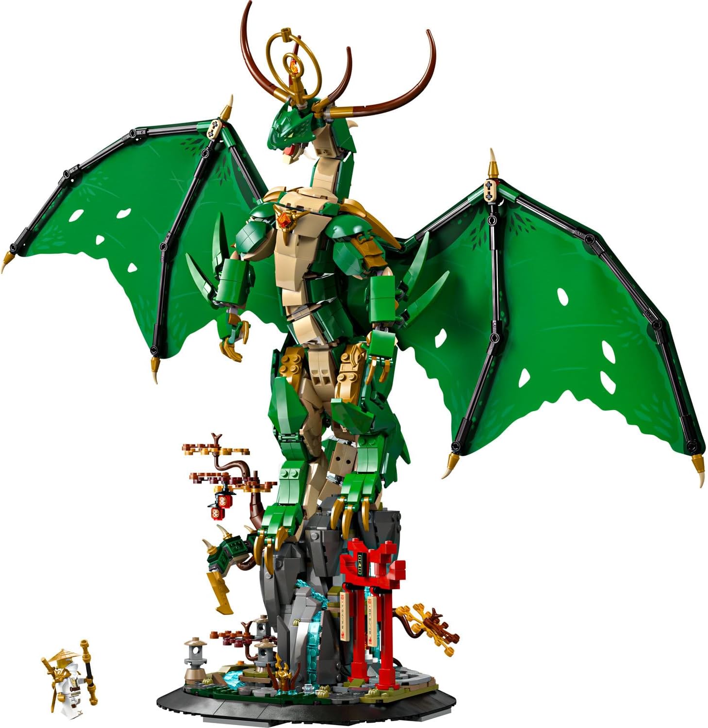 ماکت اژدهای نینجاگو با تمرکز بر نمایش - این اسباببازی ساختنی برای طرفداران نینجاگو ۱۴ سال به بالا است. این ماکت شامل یک فیگور اژدهای نگهبان با جزئیات است که میتوان آن را به مجموعهها اضافه کرد.یک پایه نمایش غنیشده با جزئیات - با این پایه نمایش که شامل عناصری مانند برکه، فانوسها، یک در سنتی و یک شمشیر جادویی معلق در هوا است، به دنیای نینجاها قدم بگذارید.فیگور اژدهای قابل تنظیم - سر، بازوها و فلسهای فیگور اژدهای نگهبان را میتوان در موقعیتهای مختلف تنظیم کرد. این به کودکان یا کلکسیونرها اجازه میدهد تا مدل را مطابق با ترجیحات خود نمایش دهند.مینی فیگور استاد وو - این مجموعه همچنین شامل یک مینی فیگور ویژه از شخصیت افسانهای نینجاگو، استاد وو، به همراه لوازم جانبی عصای او است.هدیه ایدهآل برای کلکسیونرها - این ماکت با فرآیند ساخت دقیق و طراحی بصری جذاب، گزینه هدیهای فوقالعاده برای جوانان و بزرگسالان علاقهمند به دنیای لگو نینجاگو است.