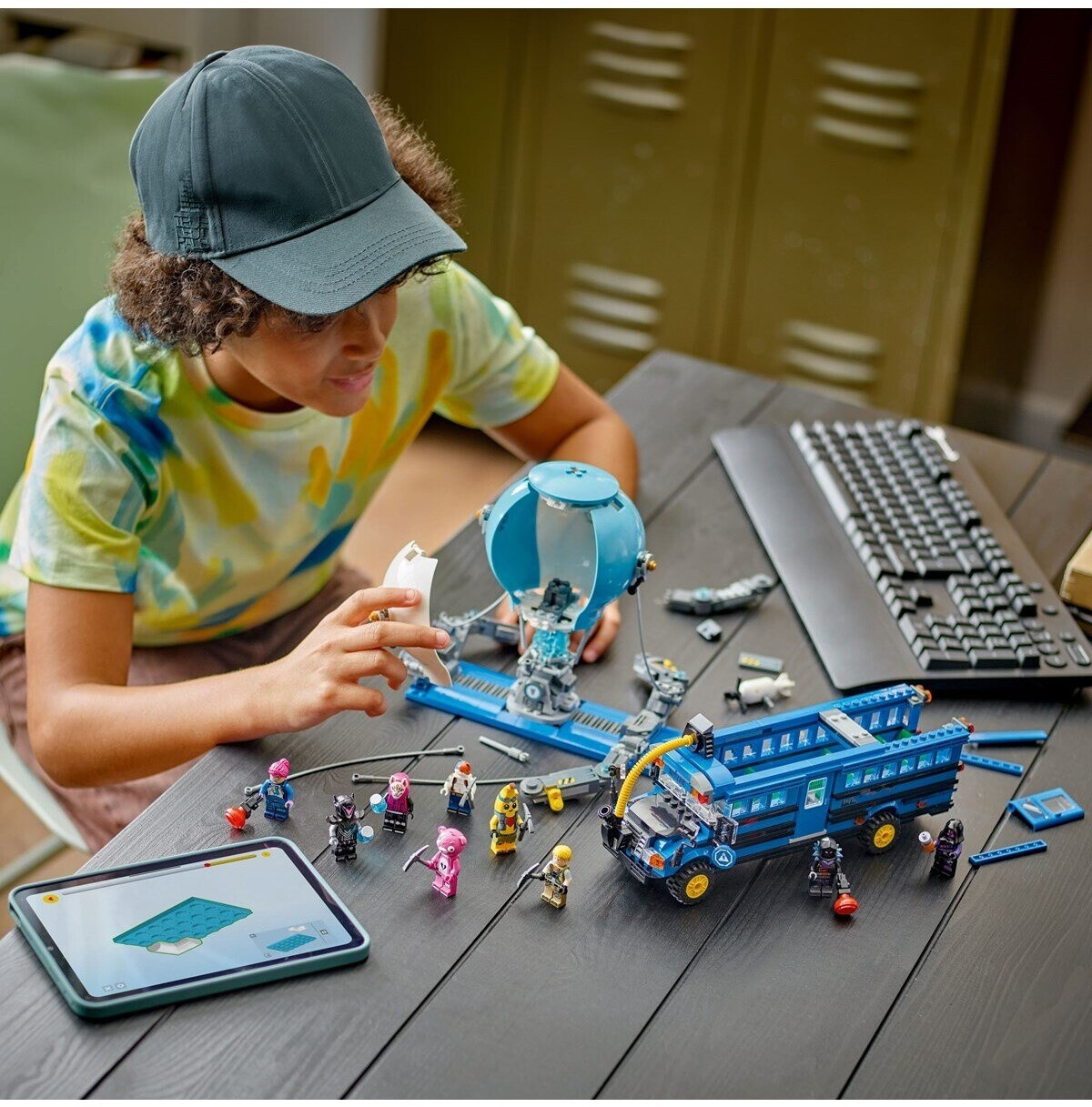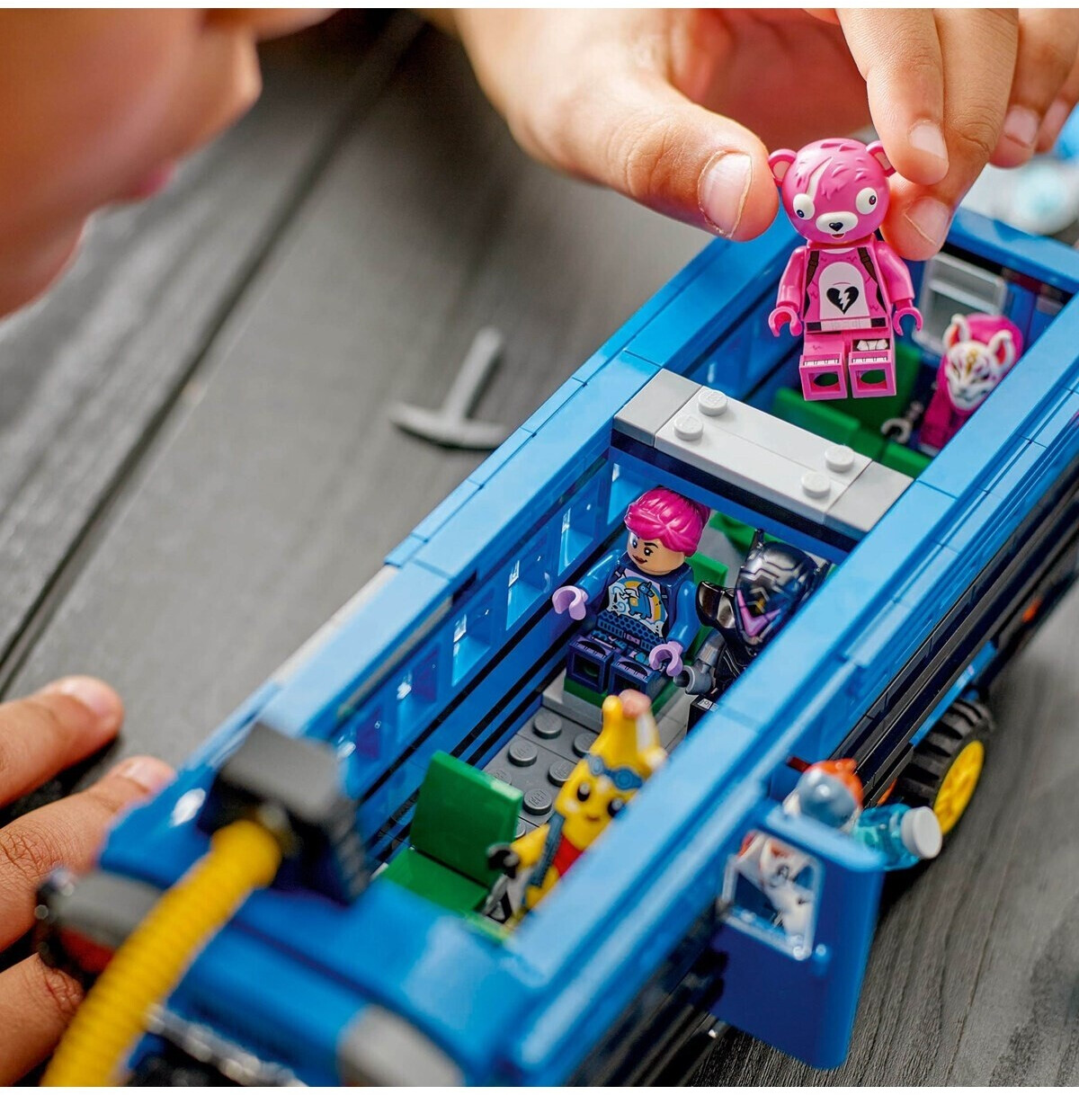 تشویق به بازیهای خلاقانه - کودکان ۱۰ سال به بالا، طرفداران، نوجوانان و بزرگسالان میتوانند با اتوبوس جنگی لگو فورتنایت، یک مجموعه اسباببازی سرگرمکننده برای ساخت اسباببازیهای بازی ویدیویی، ماجراجوییهای خلاقانهای را آغاز کنند.وسیله نقلیه اسباببازی لگو - طرفداران فورتنایت از ساخت نسخه آجری اتوبوس جنگی که در بازی ویدیویی لگو فورتنایت وجود دارد، هیجانزده خواهند شد.با جزئیات کامل - این مجموعه اسباببازی شامل لوازم جانبی مانند نوشابه آبی، گراپلر، کلنگ و سیل واتر است.شامل ۹ مینیفیگور لگو فورتنایت - جنگجوی گردان، ویکتور ماجراجو، بمبافکن فریبنده، رهبر تیم بامزه، قاتل مکعبی، مزاحم نخبه، دریفت، خطر و ریون است که ماجراجویی را زنده میکند.ایده هدیه برای کودکان ۱۰ سال به بالا - یک مجموعه اسباببازی ساختمانی میتواند به عنوان هدیه تولد یا کریسمس به پسران و دخترانی که عاشق بازیهای ویدیویی هستند و طرفداران فورتنایت در هر سنی اهدا شود.