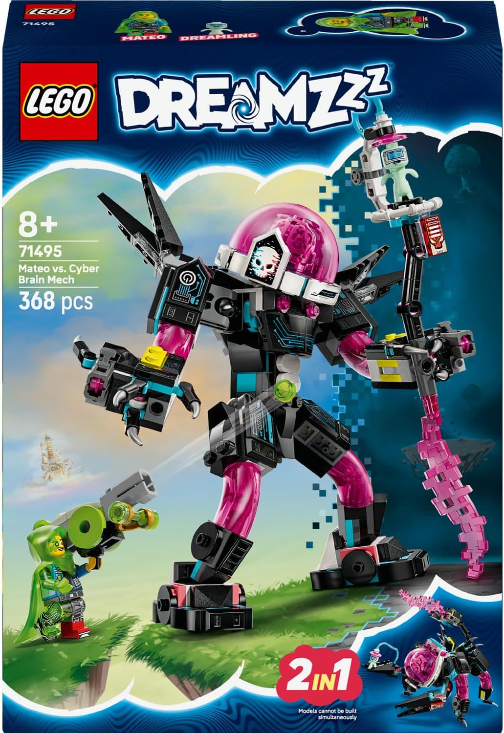 یک مجموعه بازی فوقالعاده - تخیل پسران و دختران ۸ سال به بالا را با مجموعه ساختنی LEGO DREAMZzz Mateo در مقابل Cyber Brain Robot آزاد کنید، که ۲ راه برای تبدیل یک کپسول رنگارنگ ارائه میدهد.اسباببازی حیوانات قابل بازسازی برای کودکان - پسران و دختران میتوانند پس از ساختن یک کپسول رنگارنگ، آن را به ربات Cyber Brain یا ربات عقرب Cyber Brain تبدیل کنند.پر از جزئیات - این مجموعه ساختنی خلاقانه شامل پرتابکنندههای پرتابه، یک توپ بزرگ شلیککننده لجن، یک کابین خلبان بازشونده و پرتابکنندههای ماژولار سازگار با سایر مجموعههای مجموعه ۲۰۲۵ LEGO DREAMZzz (به صورت جداگانه فروخته میشود) است.مینی فیگور لگو - Mateo و فیگور Dreamer - به این اکشن جان میبخشد و نقشآفرینی تخیلی را جرقه میزند.