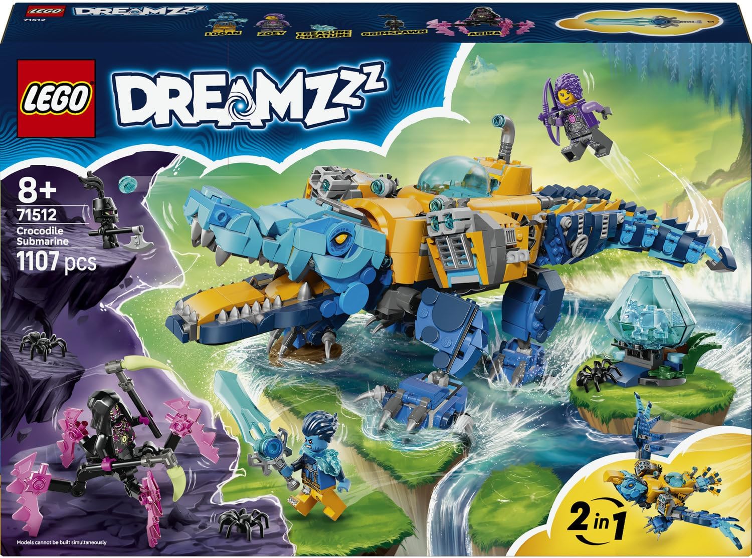 زیردریایی اسباببازی فوقالعاده برای کودکان - پسران و دختران ۸ سال به بالا میتوانند با نقشآفرینی با مجموعه اسباببازی ساختنی LEGO DREAMZzz Crocodile Submarine (71512) تخیلات خود را آزاد کنند.۱ مجموعه، ۲ گزینه ساخت و ساز - کودکان میتوانند با استفاده از بلوکهای ساختمانی یکسان، یک زیردریایی اسباببازی تمساح با سر، پاها و دم قابل تنظیم یا یک زیردریایی اسباببازی عقاب با بالهای قابل تنظیم بسازند.اسباببازیهای اکشن - زیردریایی اسباببازی تمساح و زیردریایی عقاب پرنده دارای دو پیشرانه با تیراندازهای جانبی و محفظههای پنهان در دو طرف هستند.۳ مینیاتور - شامل قهرمانان لوگان و زوئی و شرور آریکا، به علاوه ۲ عنکبوت، یک فیگور کلکسیونی موجود گنج آبی و یک فیگور گریماسپاون، برای تشویق به نقشآفرینی خلاقانه و پر از اکشن. ایده هدیه برای کودکان - این مجموعه اسباببازی ساخت حیوانات دریایی، که ۲ گزینه ساخت مختلف ارائه میدهد، یک هدیه منحصر به فرد برای پسران و دختران ۸ سال به بالا است، برای تولد یا هر مناسبتی عالی است.