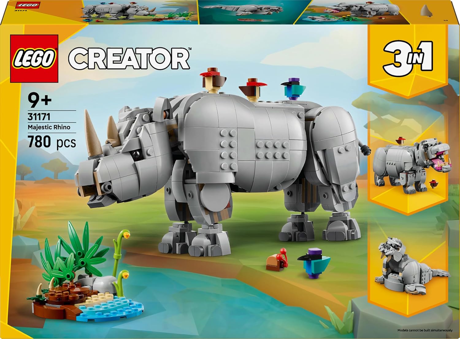 سه گزینه ساخت حیوانات در یک جعبه - مجموعه 3 در 1 حیوانات وحشی LEGO Creator: کرگدنها و پرندگان شگفتانگیز به کودکان این امکان را میدهد که سه فیگور حیوانات مختلف - یک کرگدن، اسب آبی و شیرماهی - را بارها و بارها با همان آجرها بسازند و کشف کنند.مدلهایی که سناریوسازی را تشویق میکنند - با یک کرگدن اسباببازی شامل 4 پرنده و یک حلزون، یک اسب آبی با 2 پرنده یا یک فیگور شیرماهی با جزئیات ماهی، کودکان میتوانند سناریوهای مختلف حیات وحش را ایجاد کنند (مدلها را نمیتوان همزمان ساخت).فیگورهای متحرک - فیگورهای کرگدن، اسب آبی و شیرماهی دارای پاها، گوشها، دمها و سایر قسمتهای قابل تنظیم هستند. کودکان میتوانند به راحتی فیگورها را در حالتهای مختلف قرار دهند و به لطف این سازههای متحرک، بازیهای پویایی ایجاد کنند.مدلهای آماده نمایش - پس از اتمام مراحل ساخت، کودکان میتوانند فیگورهای حیوانات را در اتاقهای خود به نمایش بگذارند. بنابراین، مدلهای LEGO هم به یک اسباببازی سرگرمکننده و هم به یک قطعه تزئینی تبدیل میشوند.