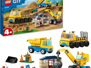 لگو سری سیتی مدل کامیون های ساختمانی و جرثقیل 60391 - LEGO City Construction Trucks & Crane with Wrecking Ball 60391