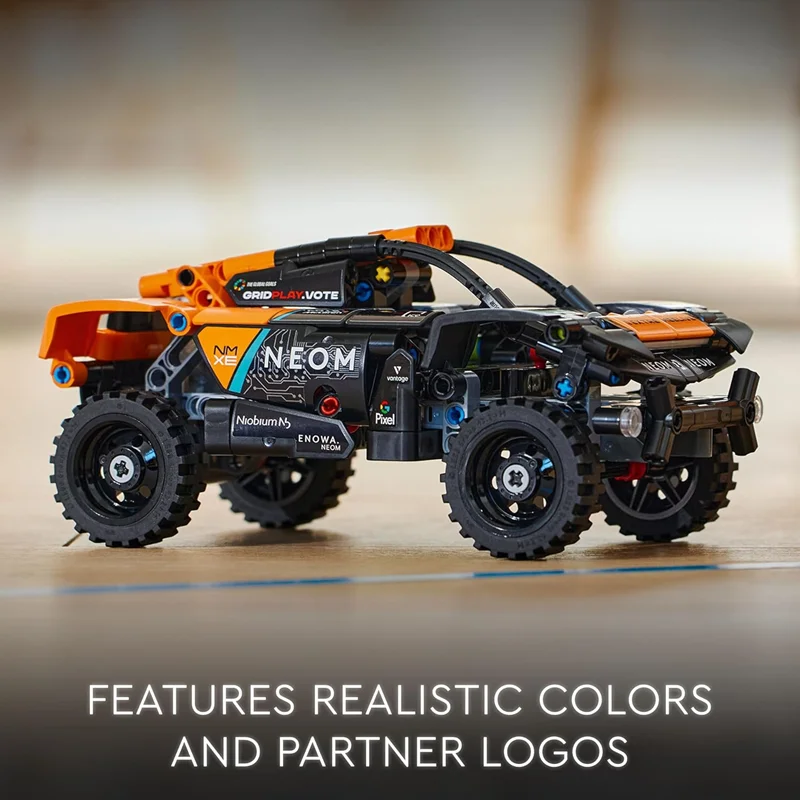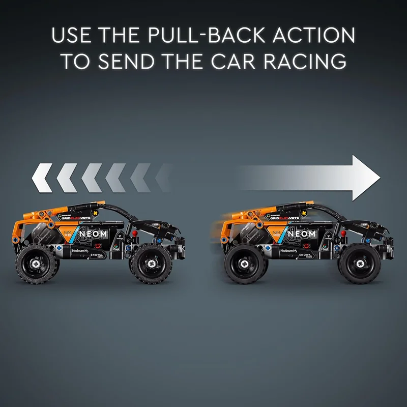 ماشین بکشید و رها کنید برای پسران و دختران 7 سال به بالا - با مجموعه اسباب بازی ماشین مسابقه ای NEOM McLaren Extreme E با قابلیت کشیدن و رها کردن برای فعالیت های نقش آفرینی خودرو، یک پروژه ساختمانی سرگرم کننده به بچه ها بدهید.ماشین اسباببازی را بکش و رها کن – بچهها میتوانند مدلهای LEGO Technic را با استفاده از عملکرد کشش و رها کردن زیپ کنند، همانطور که تصور میکنند مانند یک راننده واقعی Extreme E در سراسر جهان مسابقه میدهند.لاستیک های بزرگ – مدل ماشین اسباب بازی دارای جزئیات معتبر الهام گرفته شده از ماشین مسابقه واقعی است، مانند لاستیک های خارج از جاده و آرم های شریکهدیه ماشین برای بچه ها - این مجموعه یک هدیه جالب تولد، کریسمس یا مناسبت ویژه برای پسران و دخترانی است که عاشق اسباب بازی های وسیله نقلیه و ماشین های خارج از جاده هستند.مقدمه ای بر مهندسی – مجموعه های مدل قابل ساخت LEGO Technic دارای حرکات و مکانیسم های واقعی هستند که عاشقان جوان لگو را با جهان مهندسی آشنا می کند.