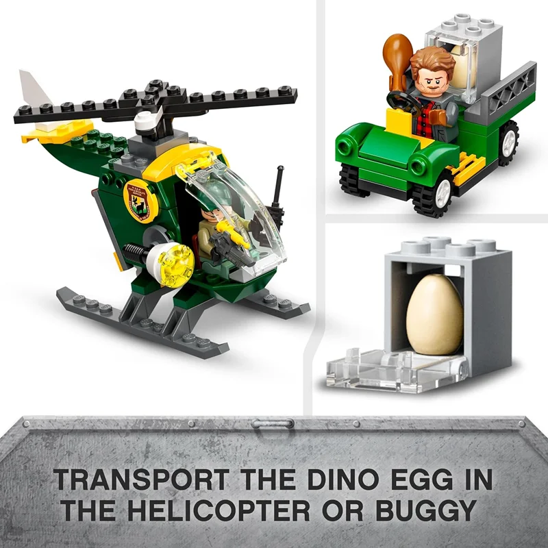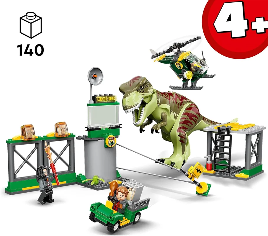 مجموعه شروع – با این مجموعه بازی T. rex Dinosaur Escape (76944) با فرودگاه، هلیکوپتر، ماشین و فیگور تی رکس، اسباببازیهای دنیای ژوراسیک لگو را به کودکان 4 سال به بالا معرفی کنید.3 مینی فیگور لگو - اوون گریدی، ضیا رودریگز و نگهبان حیات وحش با لوازم جانبی مانند واکی تاکی اسباببازی و آرامبخش برای ایفای نقش تخیلیبسیاری از ویژگیهای الهامگرفته از بازی - فرودگاهی با سکوی هلیکوپتر و گاراژ، یک قفس باز که میتوان آن را با هلیکوپتر یا ماشین حمل کرد، و یک حصار کوبنده برای فرار دایناسورهای نقشآفرینیایده هدیه برای سنین 4 سال به بالا - این مجموعه 140 تکه LEGO Jurassic World که به راحتی پس از فرار دایناسورها به راحتی قابل ساخت است، یک تولد سرگرم کننده، هدیه کریسمس یا هدیه غافلگیرکننده برای کودکان نوپا درست می کند.ست پخش قابل حمل – فرودگاه 15 سانتی متر ارتفاع، 16 سانتی متر عرض، 6 سانتی متر عمق و T. rex 11 سانتی متر ارتفاع دارد.