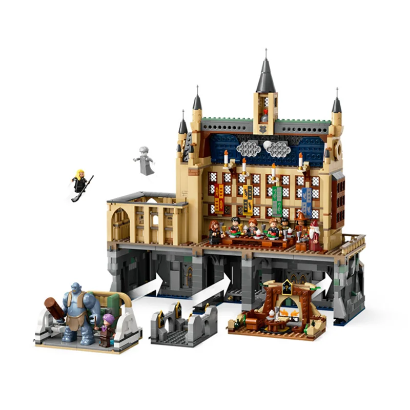 مجموعه بازی لگو هری پاتر کلکسیونی قلعه هاگوارتز برای کودکان، مدل لگو با جزئیات تالار بزرگ. یک ایده هدیه جادویی برای جادوگران جوان، جادوگران و ماگل ها11 مینی فیگور، هری پاتر، ران ویزلی، هرمیون گرنجر، آلبوس دامبلدور، پروفسور کویرل، لین، دافنه گرین گراس، تری بوت، پروفسور وکتور، برادر چاق و یک ترول کوهستانییک اسباب بازی برای بازی خلاقانه، ساخت تالار بزرگ، حیاط و سیاه چال با ورودی مخفی از میان صخره ها، به علاوه سه اتاق (حمام، راهرو و اتاق مشترک هافلپاف) که می توان برای بازی آسان به بیرون رفت.این اسباب بازی ساختمانی لگو هری پاتر شامل پنج پرتره از 14 پرتره تصادفی هاگوارتز برای نمایش در راهرو سیاه چال و اتاق مشترک هافلپاف است.