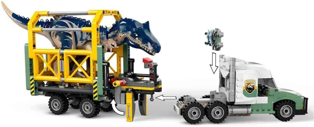 مجموعه اسباب بازی Allosaurus - با طرفداران دایناسورهای 8 ساله به بالا با این جستجوهای دایناسور دقیق رفتار کنید: مجموعه کامیون حمل و نقل Allosaurus، ساخته شده برای پرورش علاقه کودکان به ماجراجویی، حیوانات و داستان های قهرمان هیجان انگیزشکل ممکن آلوزاروس - شامل یک مجموعه اسباببازی دایناسور با دستها، پاها، سر و دهان باز، بهعلاوه مینیفیگورهای داریوش، کنجی، یاز و نگهبان/راننده برای شروع فعالیتهای نقشآفرینی و داستانها بلافاصلهمجموعه بازی ماجراجویی - بچههای خودرو دوست از این اسباببازی ماجراجویی دنیای ژوراسیک لذت خواهند برد، شامل یک کامیون با تریلر قفس دایناسور لگو با سطح شیبدار و دیوارهای باز، یک دوچرخه چهارچرخ و موارد دیگر.مجموعه ای آسان برای بازی با دوستان - با عناصر داستان سرایی اضافی مانند پهپاد، دارت های آرام بخش و تفنگ، این مجموعه اسباب بازی دایناسورهای دنیای ژوراسیک آماده است تا داستان های فرار و شکار با اکشن را بیان کند.