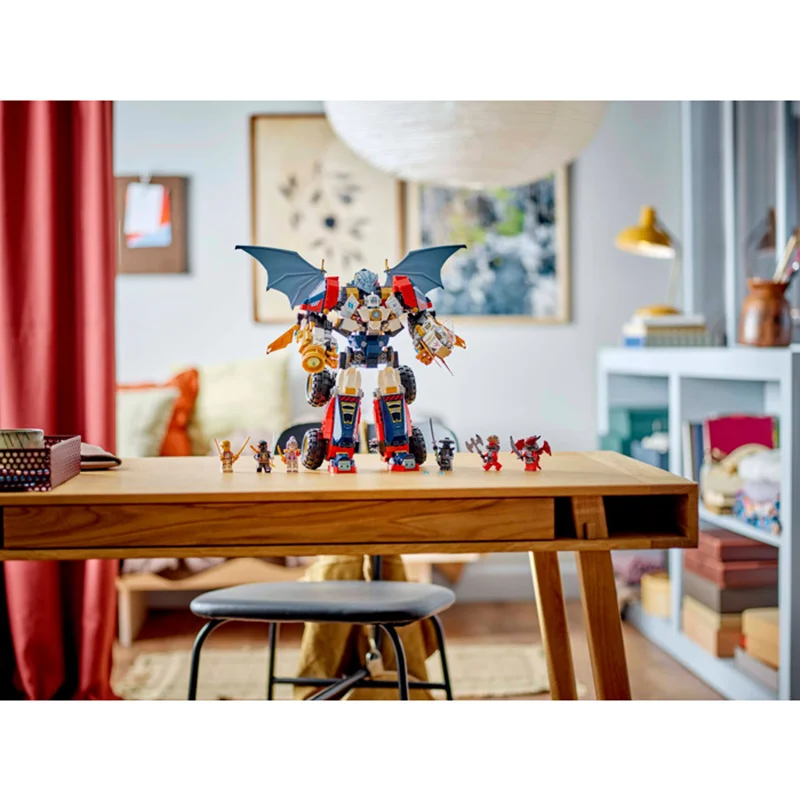 پسران و دختران 9 ساله و بالاتر میتوانند از فرصتهای بازی بیپایانی لذت ببرند، زیرا اکشن هیجانانگیز فصل 3 مجموعه تلویزیونی NINJAGO® Rise of the Dragons را با مجموعه ساختمانی 4 در 1 (71834) Zane's Ultra Combo Mech بازسازی میکنند. بچهها میتوانند با ماشین ترکیبی بزرگ و فوقالعاده بازی کنند که دارای پاها، پاها، بازوها، مچ دست، انگشتان و سر، بالهای اژدها، بهعلاوه یک کابین خلبان و 2 تیرانداز است. سپس می توانند آن را به 4 مدل کوچکتر تقسیم کنند: یک اژدهای اسباب بازی با ویژگی ها و بال های ممکن. جت اسباب بازی با موتورهای قابل حمل و کابین خلبان چرخان؛ یک ماشین اسباب بازی با 4 لاستیک بزرگ آفرود و 2 کابین بازشو، یکی با سلاح مخفی و یک اکشن فیگور زین. این مجموعه بازی نینجا شامل 6 مینی فیگور برای کودکان است تا ساعت ها از بازی تخیلی نبرد لذت ببرند.