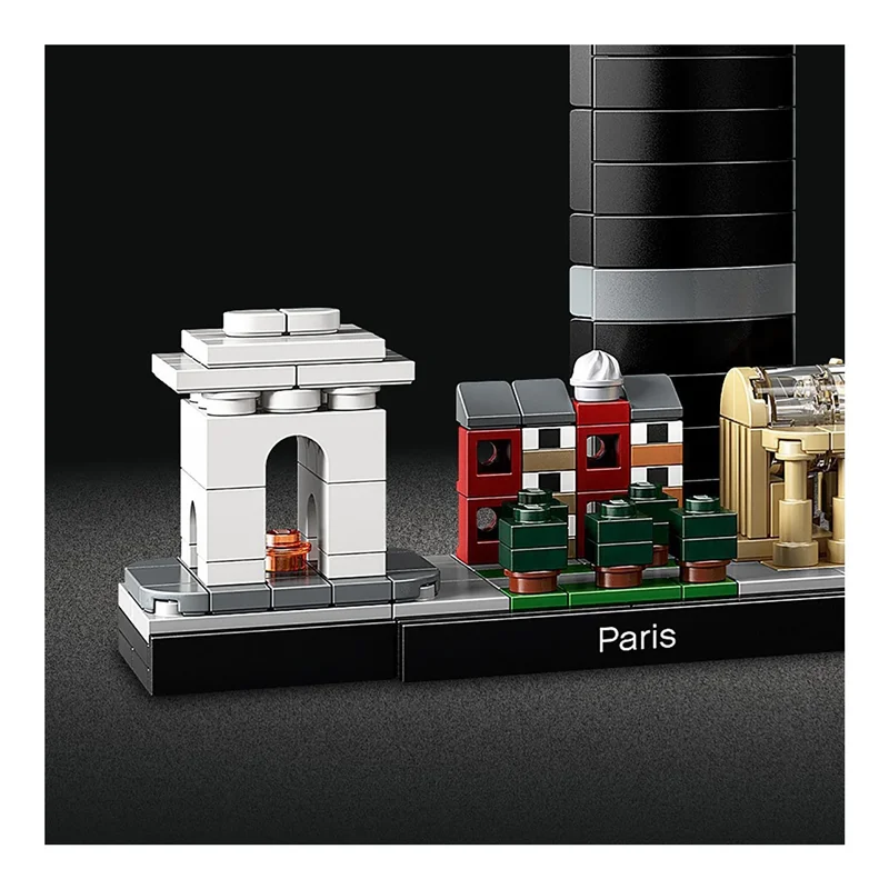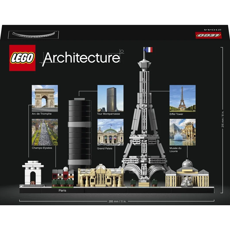تفسیر پاریس از معماری لگو شامل مناطق پوشیده از چمن و درخت با مجموعه ای از مکان های دیدنی معروف پاریس مانند طاق پیروزی، شانزه لیزه، تور مونپارناس، کاخ بزرگ، برج ایفل و لوور. کتابچه شامل اطلاعات تاریخی در مورد پاریس و گذشته معماری آن به همراه اطلاعاتی در مورد طراح، معمار و تاریخ هر ساختمان است. ((فقط فرانسوی و انگلیسی. سایر زبان ها برای دانلود در LEGO.com/architecture موجود است.) شامل پایه 4x32 با پلاک تزئینی پاریس پویاترین شهرهای جهان را با مجموعه ساختمان های شهر معماری بسازید.
